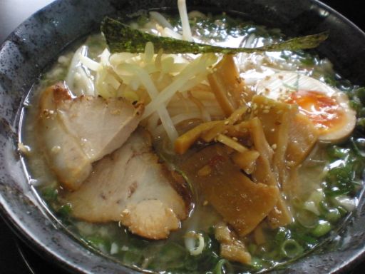 具材は青ネギ、白髪ネギ、もやし、メンマ。程良い味付けの煮卵がえ~感じ。